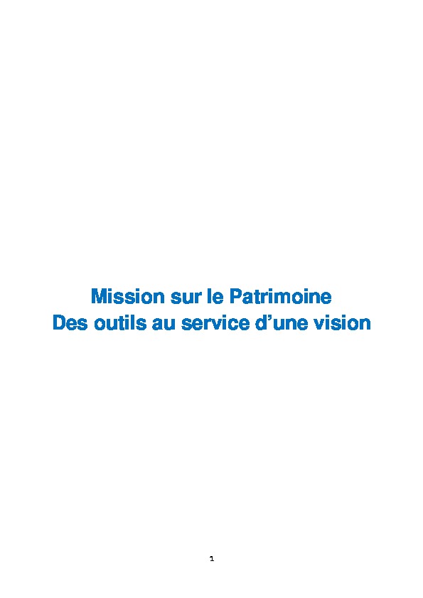 Mission sur le Patrimoine. Des outils au service d’une vision